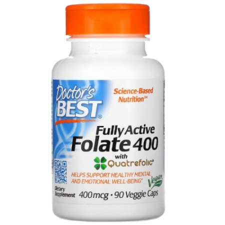 Полностью активный фолат& 400 от Doctor's Best с Quatrefolic®️& содержит глюкозаминовую соль (6s) -5-метилтетрагидрофолата Quatrefolic®, наиболее биодоступную форму фолиевой кислоты, обеспечивающую большую стабильность и растворимость в воде.