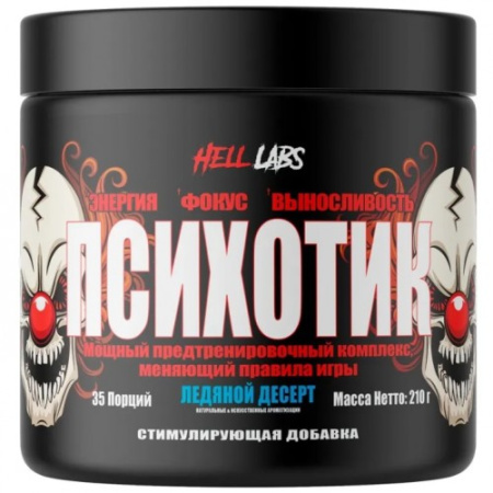 Команда технологов Hell_Labs создала полный аналог Insane Psychotic. На выходе получился продукт с эффектом "1 в 1", кроме того, теперь данный предтренировочный комплекс станет более доступным. Предтренировочный комплекс Psychotic - даёт мощный выброс энергии, фокусировки и эйфории в течении 3 часов, забудьте про Мезаморф и Девкон, отныне предтрен Психотик Ваш любимый психо-предтрен, порвите свое сознание, ощутите ярость безумия workout в зале, рвите железо! Использовать только настоящим психам, фанатикам зала, почувствуй себя на курсе без курса :)