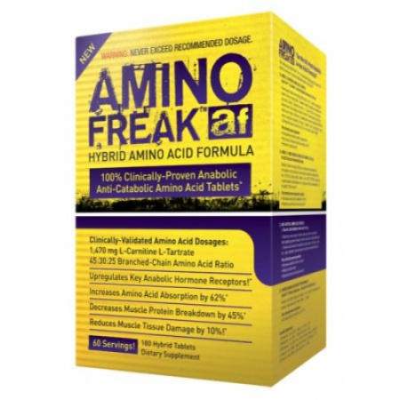 Amino Freak - самая мощная аминокислотная смесь за всю историю! Это не просто формула, этоцелая антикатаболическая и анаболическая матрица, пропорции которой подобраны в клиническихусловиях с особой тщательностью. Теперь больше защиты для ваших мышц! Специально для тех,кто терзается в выборе между аминокислотами и БЦАА - сумасшедший комплекс Изолейцина,Валина и Лейцина в смеси с антикатаболическими добавками, Глютамином, Теанином и кальцием.Вся польза аминокислот в одном продукте! Почему Amino Freak лучше любой другой формулы?В продукт вошли только качественные компоненты, в отличие от многих других продуктов. Плюс,производитель позаботился о создании специальной формулы аминокислотного состава, котораяпомогает защитить аминокислоты от распада в желудке и успешно пройти им до тонкого кишечника.Новейший компонент AstraGin увеличивает биодоступность в разы!Анаболический эффект обеспечивается благодаря высококачественному CarniFlex™ L-карнитин L-тартрат. Это лучшая форма Карнитина, способность которой влиять на рецепторы анаболическихгормонов доказана опытным путѐм. Кроме того, этот компонент предохраняет мышцы отповреждений и ускоряет восстановление. Антикатаболический эффект обеспечивают всем известные Лейцин, Изолейцин и Валин (БЦАА) иГлютамин в отношении 45:30:25 и дозировке 1470 мг. Меньше кортизола - больше мышечныхобъѐмов! Amino Freak V2 от PharmaFreak Technologies обеспечивает:- активную выработку анаболических гормонов;- защиту мышечной ткани от повреждений;- быстрое восстановление.