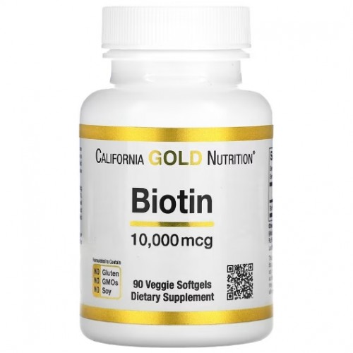Биотин& California& Gold& Nutrition& содержит 10& 000& мкг биотина в вегетарианских капсулах. Он подходит для веганов и вегетарианцев, не содержит глютена, ГМО и сои.