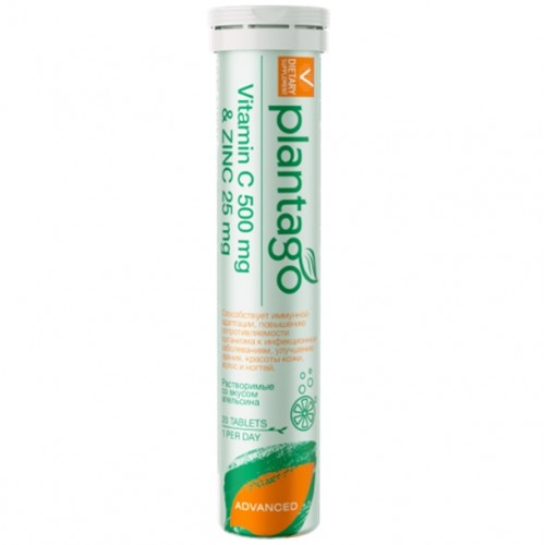 Prime Kraft -& Plantago Vitamin C 500 + Zinc 25, 20 шипучих табл.& &