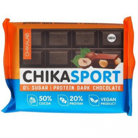 Протеиновый темный шоколад Chikasport помогает увеличить количество белка в традиционном рационе питания, а также содержит в качестве& подсластителя натуральное кукурузное волокно, улучшающее пищеварительный процесс. В одной порции темного шоколада содержится 20 грамм протеина с незаменимыми аминокислотами. Вкусный десерт для сладкоежек, который не вредит фигуре. Производитель не использует в составе ГМО, консерванты и сахар. Не оказывает негативного влияния на зубную эмаль. Помогает быстро перекусить и утолить чувство голода. Преимущества: - высокое содержание белка, - без сахара и консервантов, - натуральный и полезный состав, - высокие вкусовые качества, - быстрый перекус.