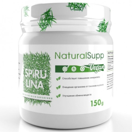 Спирулина& - сине-зеленая многоклеточная водоросль, известная своими уникальными свойствами. Содержит витамины группы В, Е (токоферол), С, калий, кальций, магний, цинк, марганец, фосфор, железо, микродозы йода, селена. Также в спирулине содержится фикоцианин, стимулирующий работу иммунной системы, хлорофилл, обладающий противоопухолевым и восстанавливающим действием, все виды незаменимых аминокислот, а также более 2000 ферментов в микродозах. Спирулина способствует избавлению организма от избытка жиров, токсинов и продуктов распада, поддержанию в норме обмена веществ, контролю над аппетитом, стимулирует процессы регенерации, уменьшает проявление акне и дерматитов. Она хороша для здоровья глаз, улучшает зрение и память. Водоросль ускоряет метаболизм, что способствует похудению, восстанавливает микрофлору кишечника.&