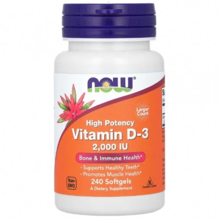 Капсулы с витамином& D3 от компании NOW®& предоставляют этот важнейший витамин в легкоусвояемой форме капсул. Обычно витамин& D попадает в организм из еды либо вырабатывается кожей под воздействием солнечных ультрафиолетовых лучей. Однако в еде он содержится в недостаточном количестве. Поскольку многие люди стремятся избегать воздействия солнца, то необходимость в дополнительном приеме витамина& D становится все более насущной.